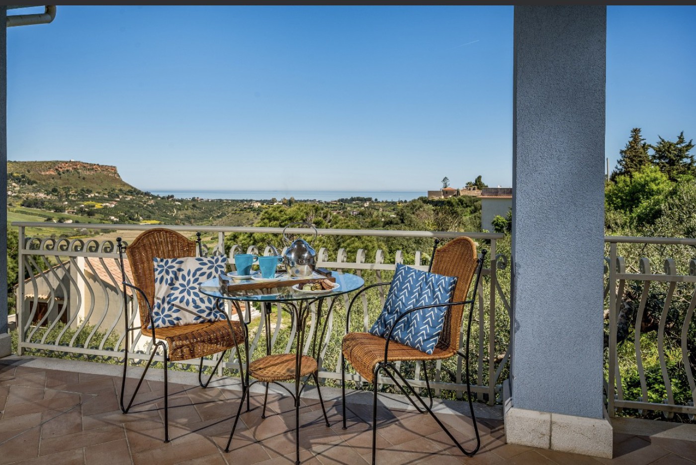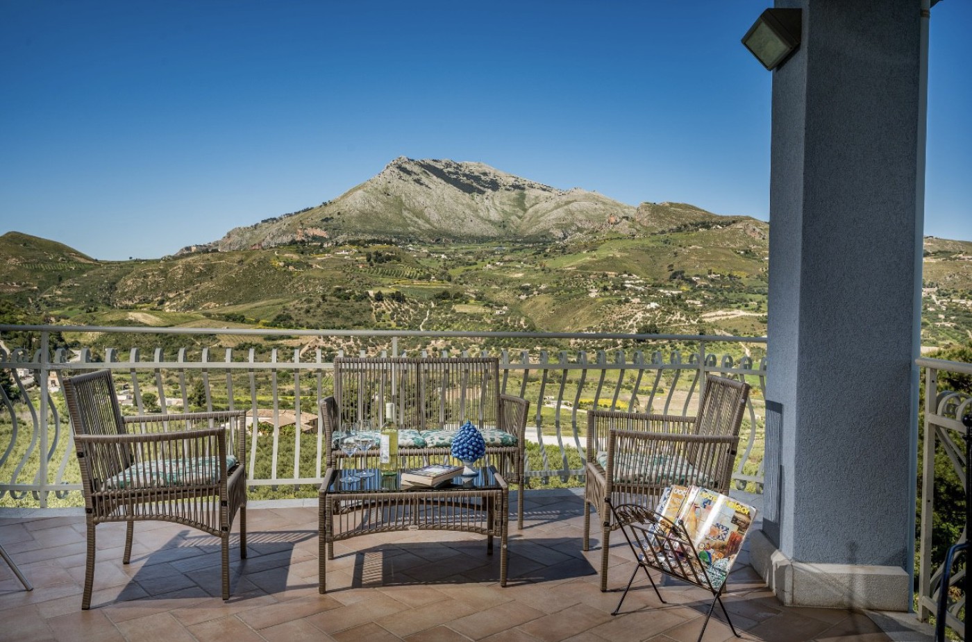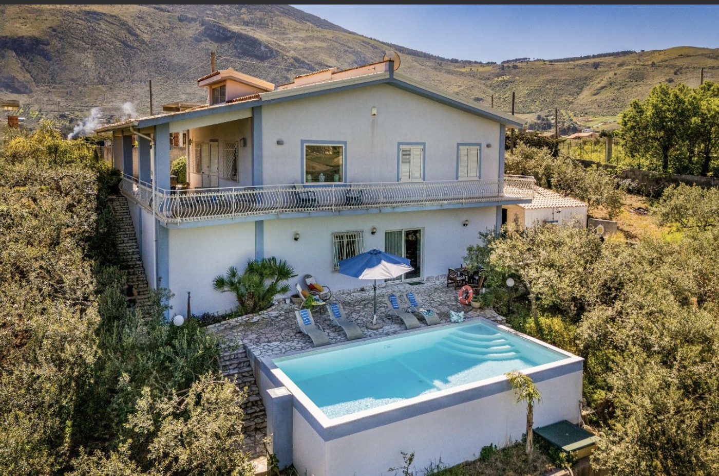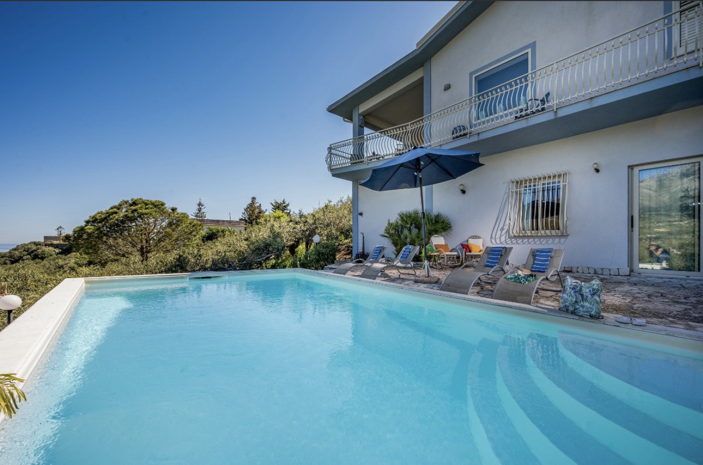 Villa Le Terrazze Blu is nestled in lush countryside near Castellammare del Golfo, surrounded by olive groves and offering complete privacy. This spacious villa features four bedrooms and two bathrooms, each equipped with a bidet.