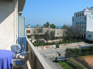 Flat with one bedroom, living room with sofa bed, bathroom with shower, cooking area, private parking place, balcony with sea view, air conditioning, tv, microwave and safe.