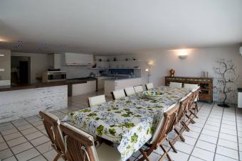 On the ground floor there is a large lounge with two large windows overlooking the sea, a fireplace, sitting area and dining area with a long table for 10 seats and fully equipped kitchenette.