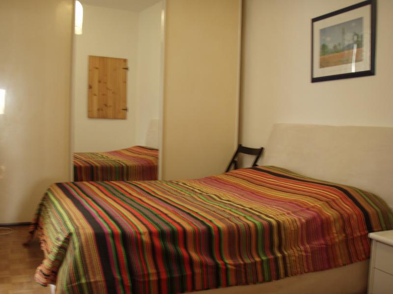 Furnished Apartament in historical centre of Bologna, near university,independent entrance on a private garden, 1st floor,one bedroom with balcony , double bed, dining room with 2 sofa,kitchen, bathroom, air conditioning, TV cable. 600 E rent for a month utilities range from 80 to 150 E month according to consume(light, heating,)