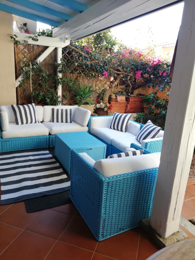 Villa for 6 people, 2 floors, double living-room with fireplace, 3 bedrooms, 2 baths with windows, big kitchen, big garden with sofa and chairs, private garage. 2 minutes walking to the beach. Air conditioning and Wi-Fi. Close to market, diving club, shops, etc.