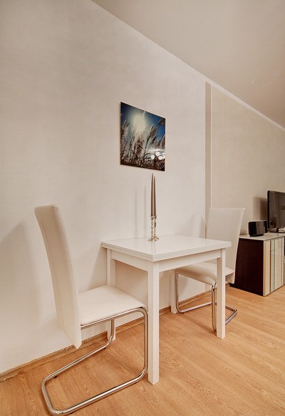 Queen bed, sofa, shelves, sideboard, wardrobe in the hallway, dining table with 2 chairs Bathroom with bathtub Furnishing as new, very good, modern style Good fitted kitchen, with window, electric. oven, ceramic hob, extractor hood, fridge Washing machine in the house Dryer in the building Complete with bed linen Complete with ...