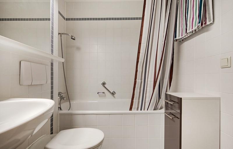 Queen bed, sofa, shelves, sideboard, wardrobe in the hallway, dining table with 2 chairs Bathroom with bathtub Furnishing as new, very good, modern style Good fitted kitchen, with window, electric. oven, ceramic hob, extractor hood, fridge Washing machine in the house Dryer in the building Complete with bed linen Complete with dishes balcony Internet flatrate Swimming pool, tennis court, gym, spa, fitness room, function room, BBQ area