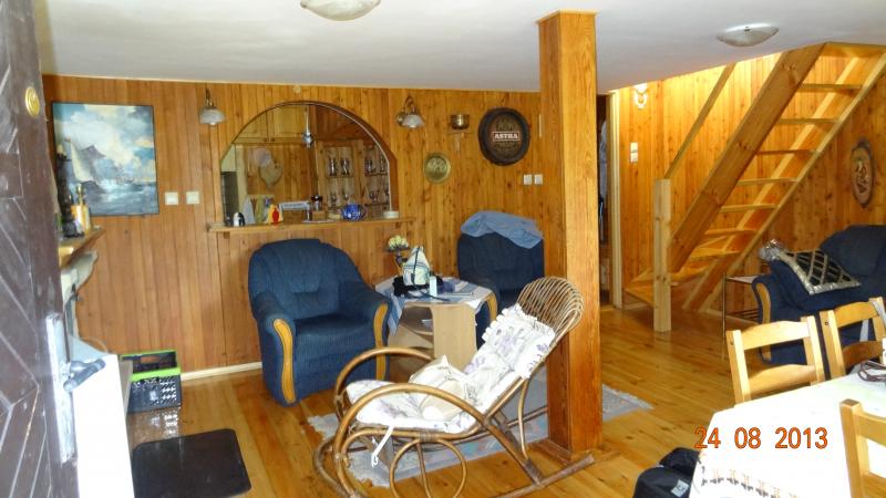 Summer house next to forest,close to lake, 45km away from Gdansk,beautiful,peacfull area,comfortable for 6 persons,pets welcome. This is fantastic place to spend holiday with a family and not only. House with 3 rooms,1 bathroom,taras,kitchen,garage and a large garden.