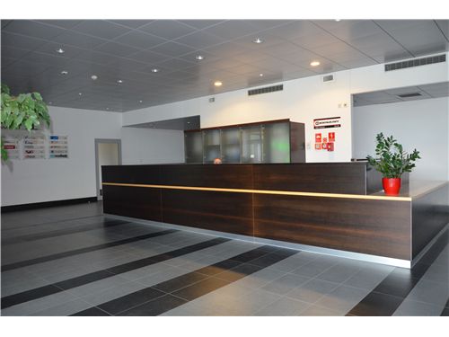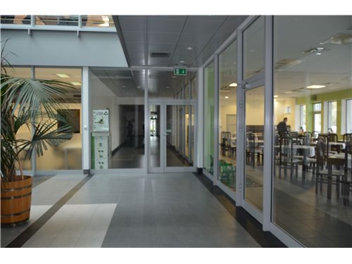 The building: - Glazed lobby with entry control point, - Glass atrium, - Restaurant, - Conference rooms, - Lifts, - Protection.