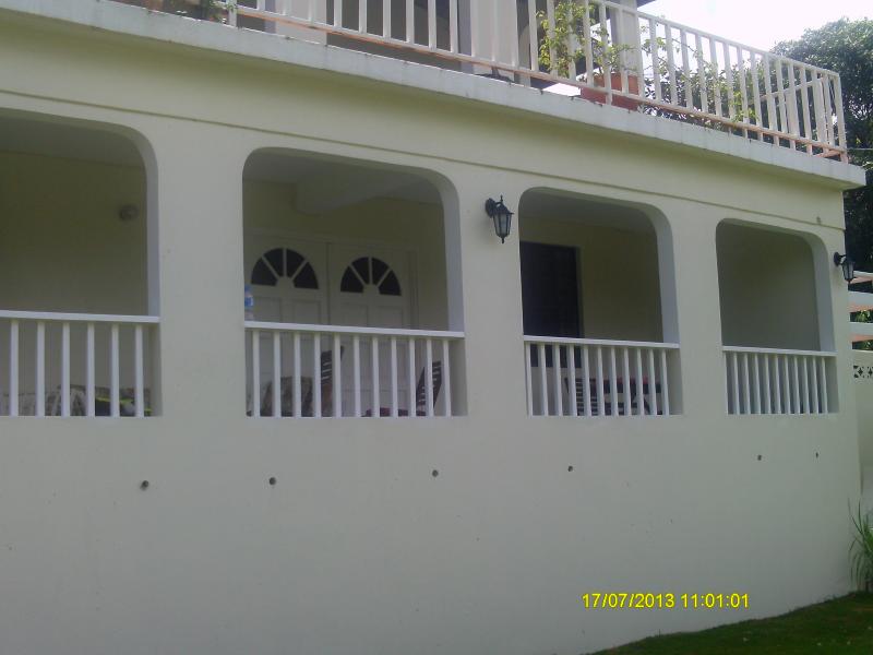 (G) Bonne Terre ~3 large fully furnished bedrooms / 2bathrooms downstairs apartment with AC & Ceiling Fans ~master bedroom ensuite, extremely large A/C & Ceiling fan living, dining area, with a large balcony projecting of the famous IGY Rodney Bay marina, beach shopping mall area,and the Caribbean Sea, with a full vegetable...