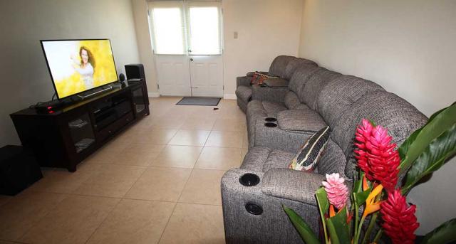 TV room leads out onto to the pool area. The property