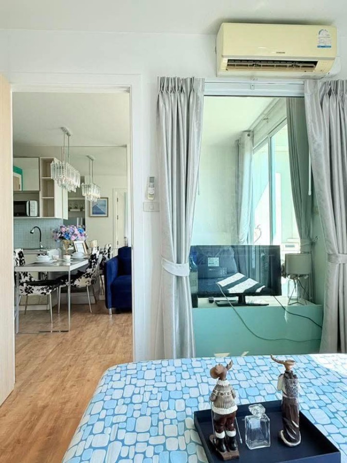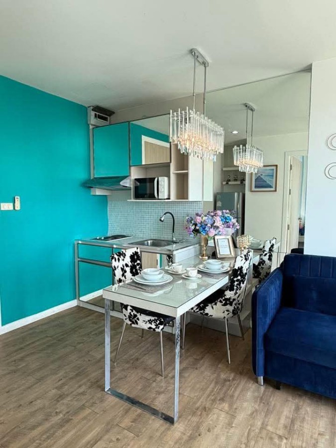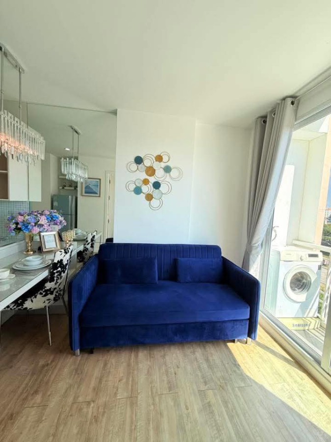 Description: This stylish condo offers modern amenities and a convertible layout ideal for short or long-term stays. Enjoy cooking in the full kitchen, relaxing on the sofa bed, or streaming your favorite shows. Just bring your luggage and settle into coastal living in Jomtien, with easy access to nearby beaches and local attractions.