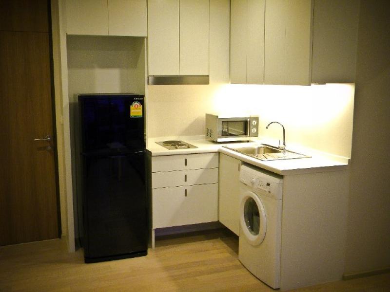 Nice, modern, and all new fully furnished (51.23 sq.m.) 1 Bedroom, 1 Living room, Open Kitchen, a balcony on 7th floor (Balcony facing Petchburi Rd., windy and quiet) Include: One Bed, Built in kitchen, Laundry and Drying machine, Microwave, Refrigerator, 2 cooking stoves with hood, etc. ...