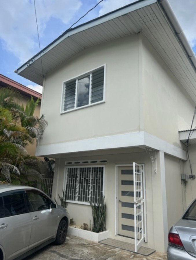 Near the Long Circular Mall, this two-story `apartment” is near Dianne Tea Shop on Long Circular Road, and within walking distance from the Assumption Church and local shopping. Features two (2) air-conditioned bedrooms, one (1) bathroom, a kitchen that opens on to a combined living & dining room with a ceiling fan, enclosed/covered laundry at-the-back, front-and-side garden beds, and one (1) secure allocated parking space out-front es semi-furnished with Major Appliances! (Also available completely unfurnished for $6,000-month, or fully furnished for $7,000-month).