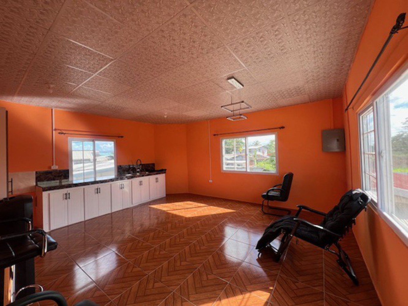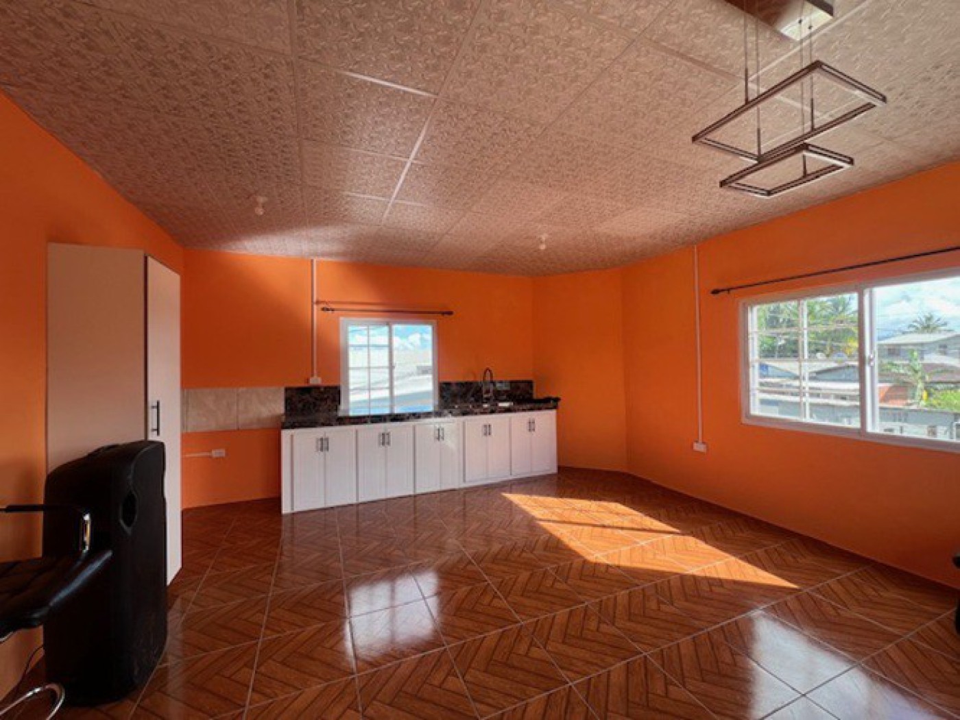 A neat and vibrant 2-bedroom upstairs apartment in Chaguanas, featuring modern finishes and convenient garage parking.