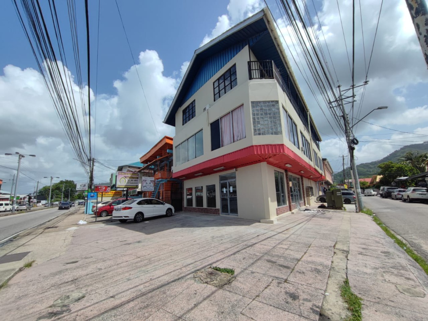 Newly renovated three-story commercial building on a prime corner lot one street before Curepe Junction. The ground floor offers 2,200 sq ft of open retail space, ideal for restaurant or retail use. Excellent visibility on the main road and parking for 12 cars provide added convenience.