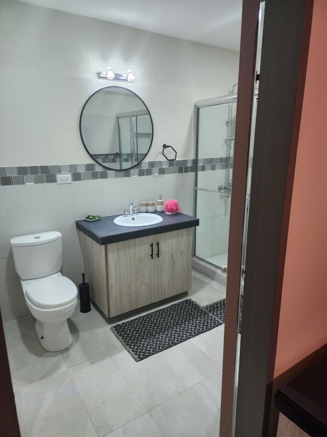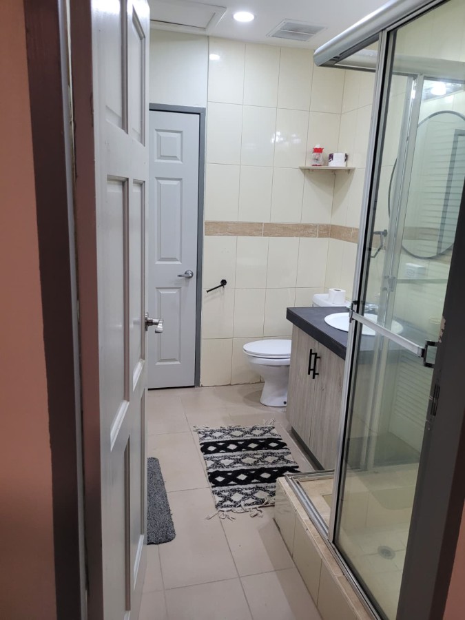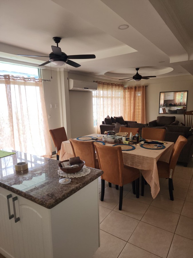 Stunning 2-bedroom, 2-bathroom apartment with sweeping views of west Port of Spain and the Gulf of Paria. Fully furnished and air-conditioned, this unit offers an open-plan kitchen that flows into the living and dining area. Glass sliding doors open onto a large wooden deck-ideal for entertaining or relaxing while taking in the panoramic city and gulf vistas.