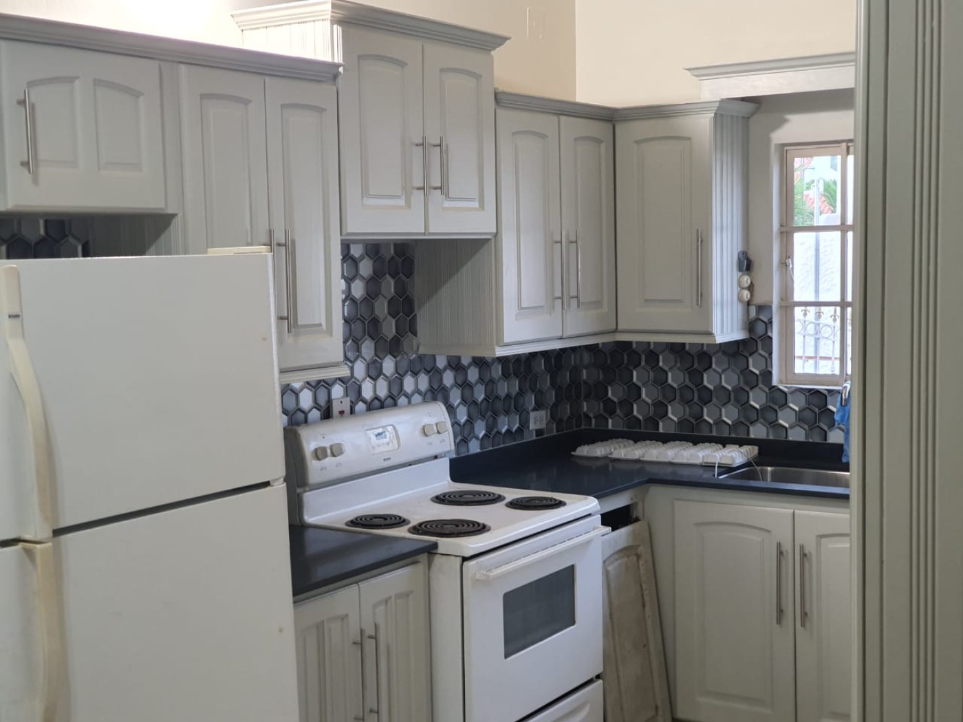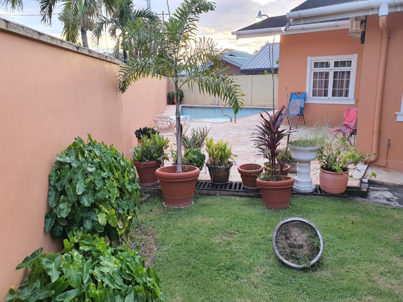 This well-maintained home is located in an upmarket residential neighborhood in Trinidad-s west and is ideal for expatriates. It is a short distance from the Falls at West Mall and within walking-distance of the international school. The spacious 3000 sq ft property is fully air-conditioned and fully furnished (cutlery provided, no linen). Amenities include a swimming pool, three bedrooms, two full bathrooms, a separate powder room, garage parking with remote entry and is pet friendly. Additional features include a dishwasher, ceiling fans, built-in bedroom cupboards, glass shower enclosures, a master Jacuzzi bathtub and a small garden. Furnishing is negotiable if not all furniture is required.