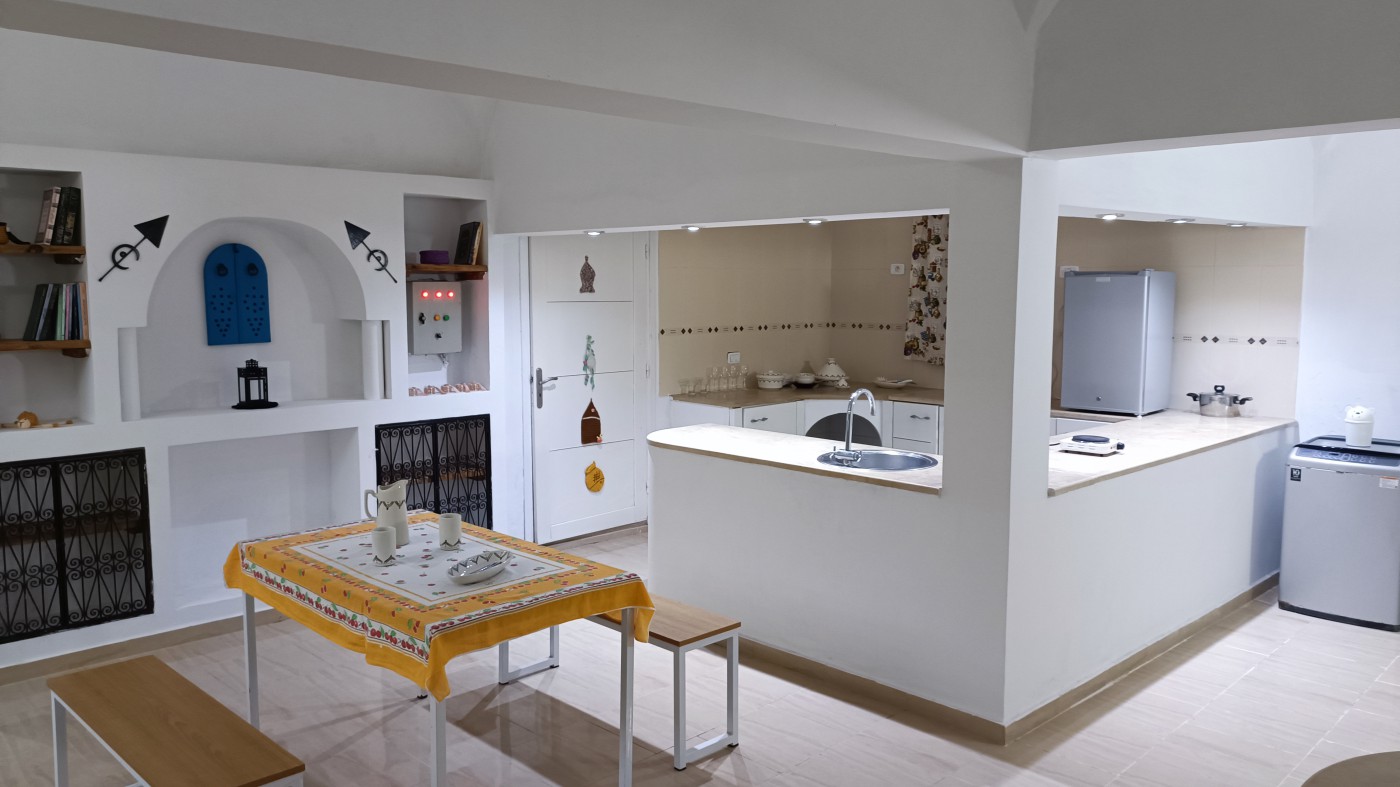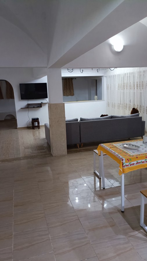 Arab-style house located in Sidi Hamed, 4 km from Yasmine Hammamet, in a very quiet, clean area with panoramic sea and mountain views. The plot spans 2 000 m², with ~200 m² of covered living space.