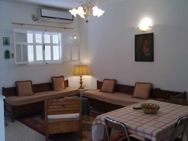 rent a small furnished house (independent, ground floor) in the city of Marsa center in a gated and quiet close to all shops and services, and 120 meters from the residence of the Embassy of France `300m from the beach, 100m from the town, 350m from saf saf coffee and Marsa beach, shops, cafes, restaurants, pharmacies, banks, clinics, shops, taxis ...