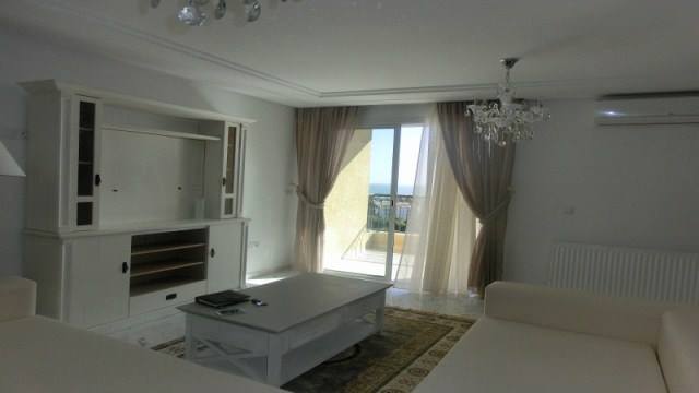 For rent (all year) A khezama on the tourist route, a lavishly furnished apartment with new fourniture and either: Two bedrooms, an open space that includes the living room and friendly kitchen, bathroom, separate toilet, sea view terrace, tourist route and companion. This apartment is equipped with central heating, air conditioning and underground parking space. Price: 1700 DT / month (negotiable slightly)..