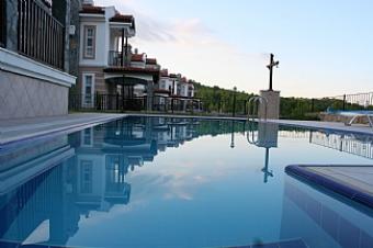 This 4 bedroom villa, completed in May 2010, is situated on a small complex of privately owned villas and apartments in a beautiful hillside setting. The property has private pool with jacuzzi, large covered veranda with barbecue for al fresco dining and landscaped gardens. Inside there is a spacious open plan living area with fitted kitchen. One bedroom and shower room are situated on the ground floor. A further 3 bedrooms, one with en-suite and jacuzzi bath and a family shower room are situated upstairs. The villa is fully air conditioned and centrally heated for all year round use. At present, the nearest shops and restaurants are 10km away in Kemer, a traditional Turkish town with a busy Friday market. It is worth visiting Esinti, a hilltop restaurant with amazing views over the town and mountains. Calis and Patara beaches (40km) the town of Fethiye (36km) with its busy marina, the Saklikent Gorge and Tlos are within easy striking distance.