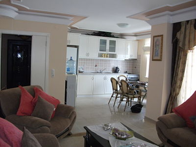 luxury two bedroom apartment ,with king size master bedroom. Furnished to a very high standard,with emphasis on quailty and ment is suited in centre of mahmutlar with abundance of restaurants and cafes. Well apppointed kitchen complete with washing machine,cooker,kettle,fridgefreezer and flat screen tv with short stroll to beach.
