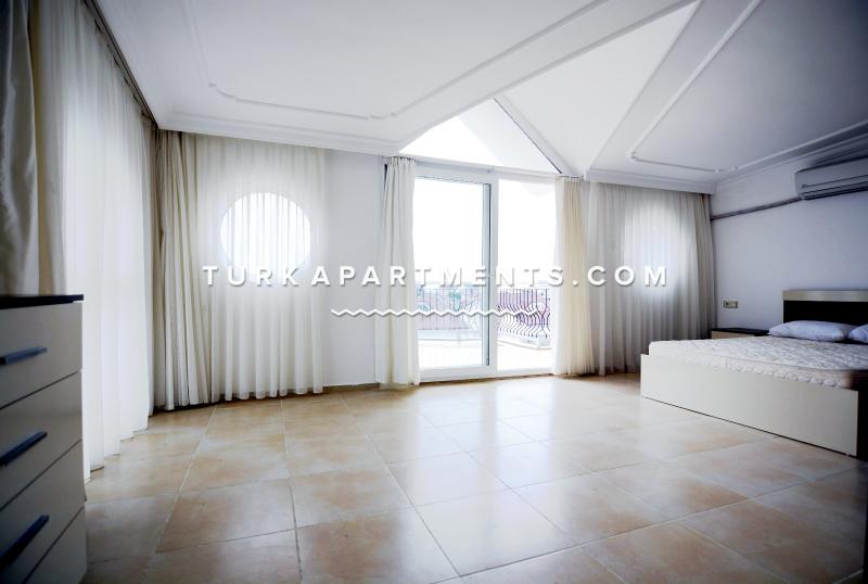 A wide Villas with sea view is for daily, weekly or monthly rent. Four-storey building with 5 bedrooms, 4 full bath + extra 1 wc, garden terrace, 2 balconies a, one spacious guestroom on ground floor with a wide open terrace on the top floor overlooking the sea. Fenced area with a swimming pool. 15 minute walk to the Altinkum beach. The nearest mini shop 100m. Central bus station 2.5km far.