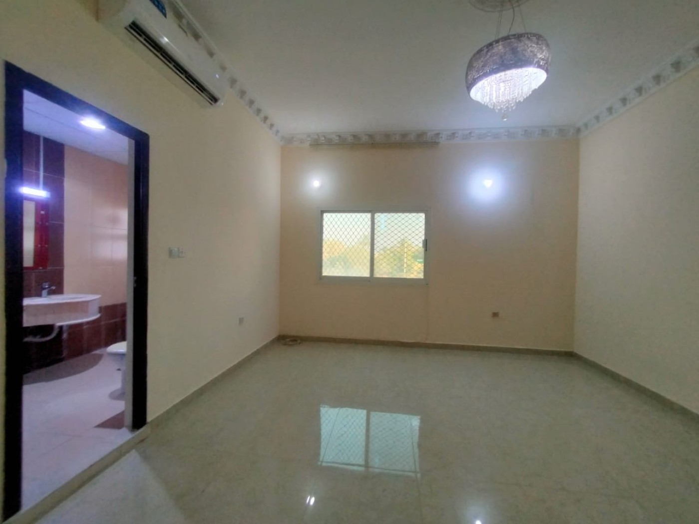 In a residential family villa compound behind Al Qana Ben Al Jassrin Abu Dhabi. Studio room with attached kitchen and washroom, bright dazzling windows, stunning ceiling, tiled flooring and security code access. Located on the first floor. Water and electricity are included. Rent is 4000 per month on a one-year contract via two cheques totalling 46k, plus a 5% agency fee. The property is connected to the main road and close to a supermarket, baqala and mall. Viewings by prior appointment only.