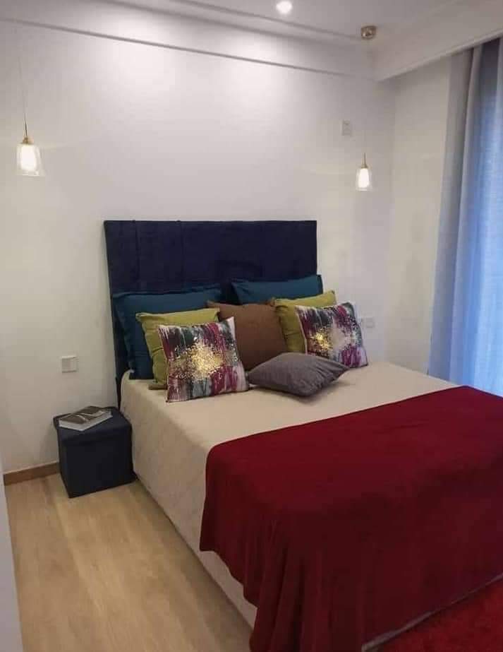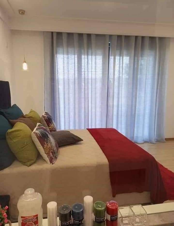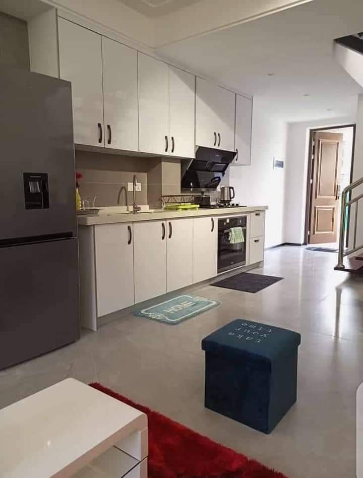 Two bedroom flat, fully furnished, two toilets, two bathrooms one downstairs and one in the main bedroom upstairs, so only one bedroom is self contained,Aircons asking price k18,500, maid service available for to two to three days in a week depending on the number of people, DSTV