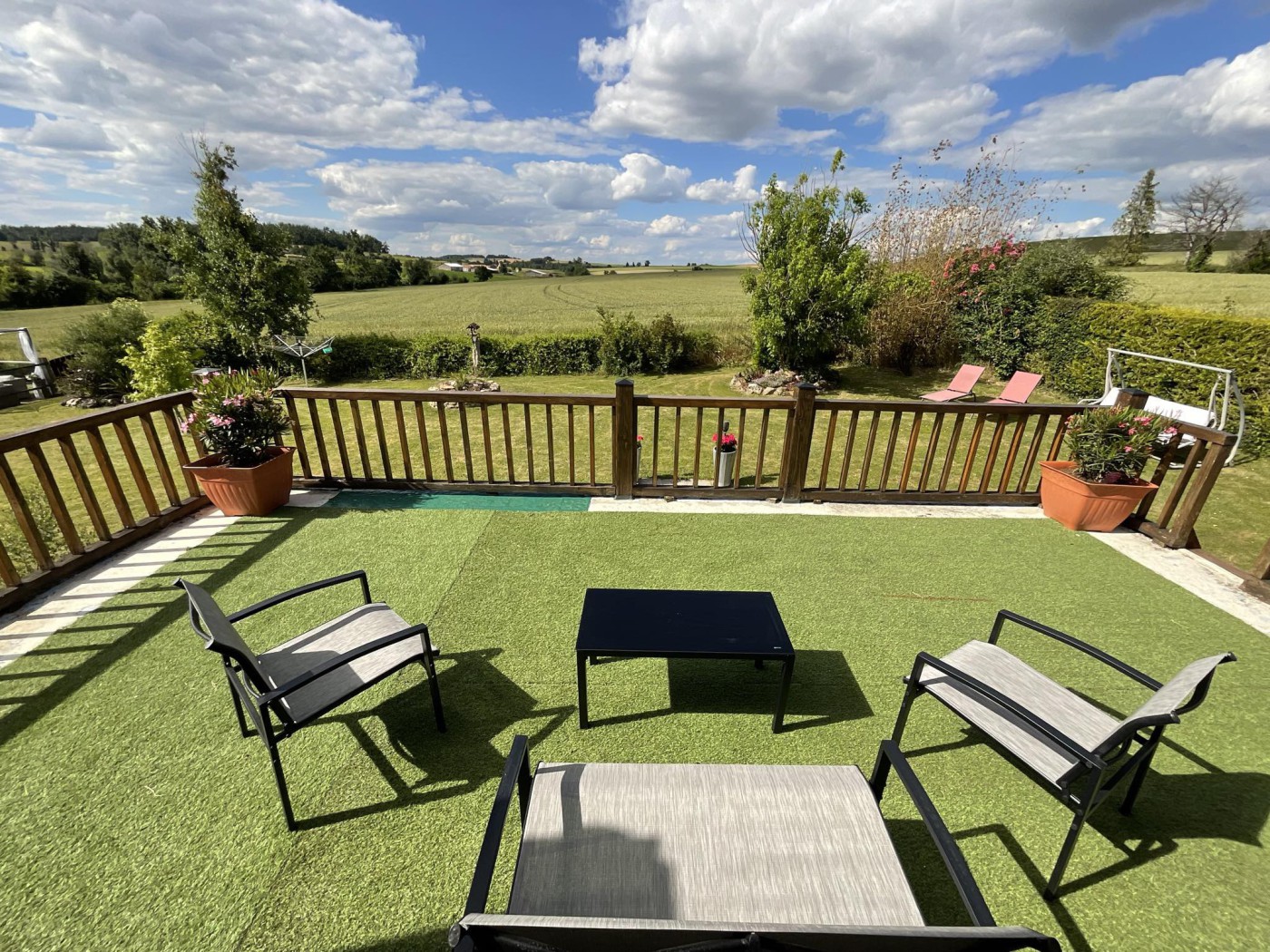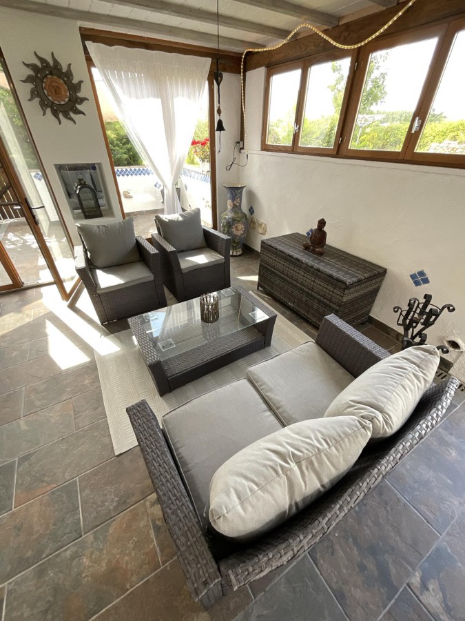 This house has been superbly designed to provide ample living and entertaining space. The outside space offers various options for outdoor leisure, including a fenced pool area, paved with natural stone, a sunny decked area, a covered terrace with a summer kitchen, and plenty of seating space. The large terrace off the master bedroom offers further outside space with lovely views of the countryside.