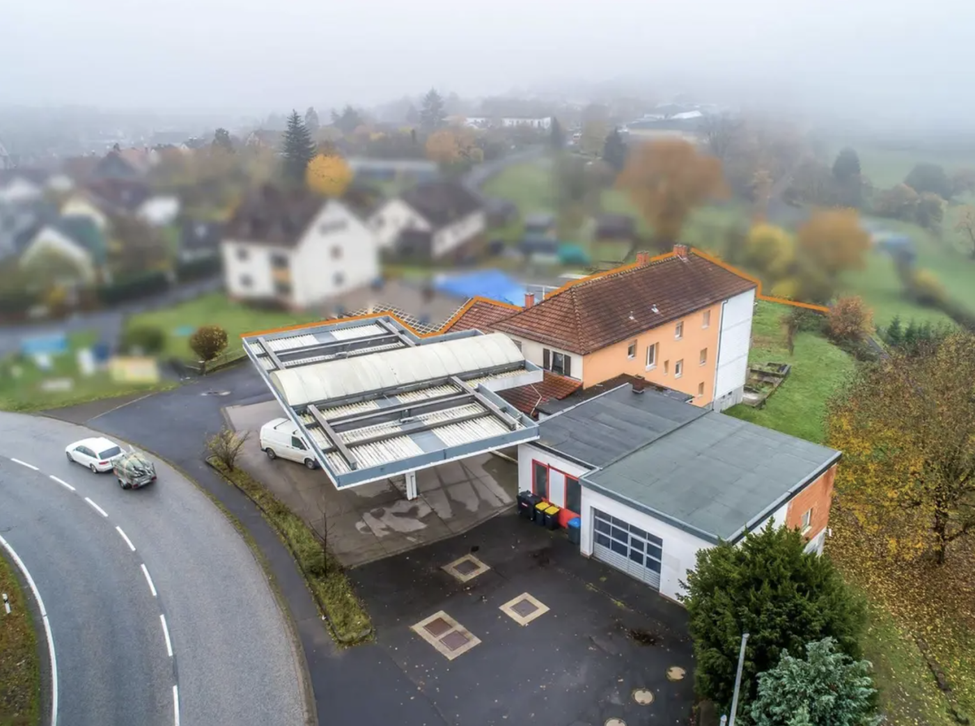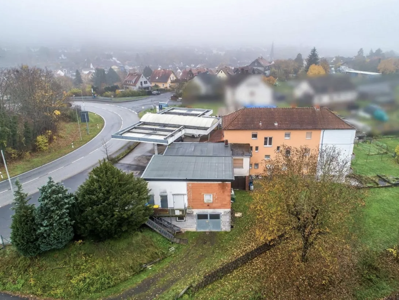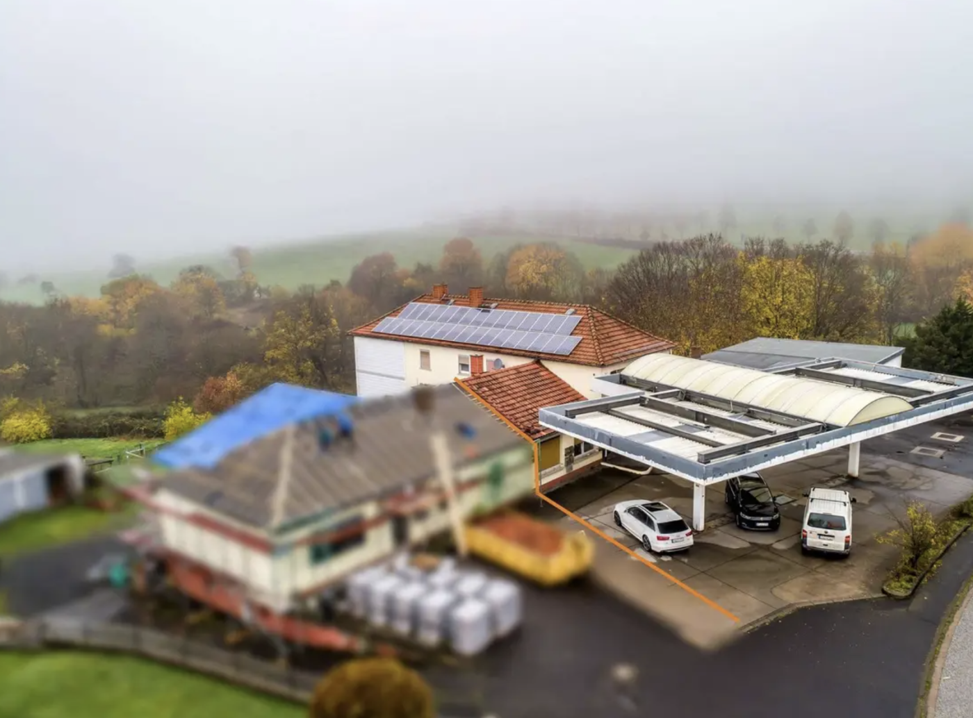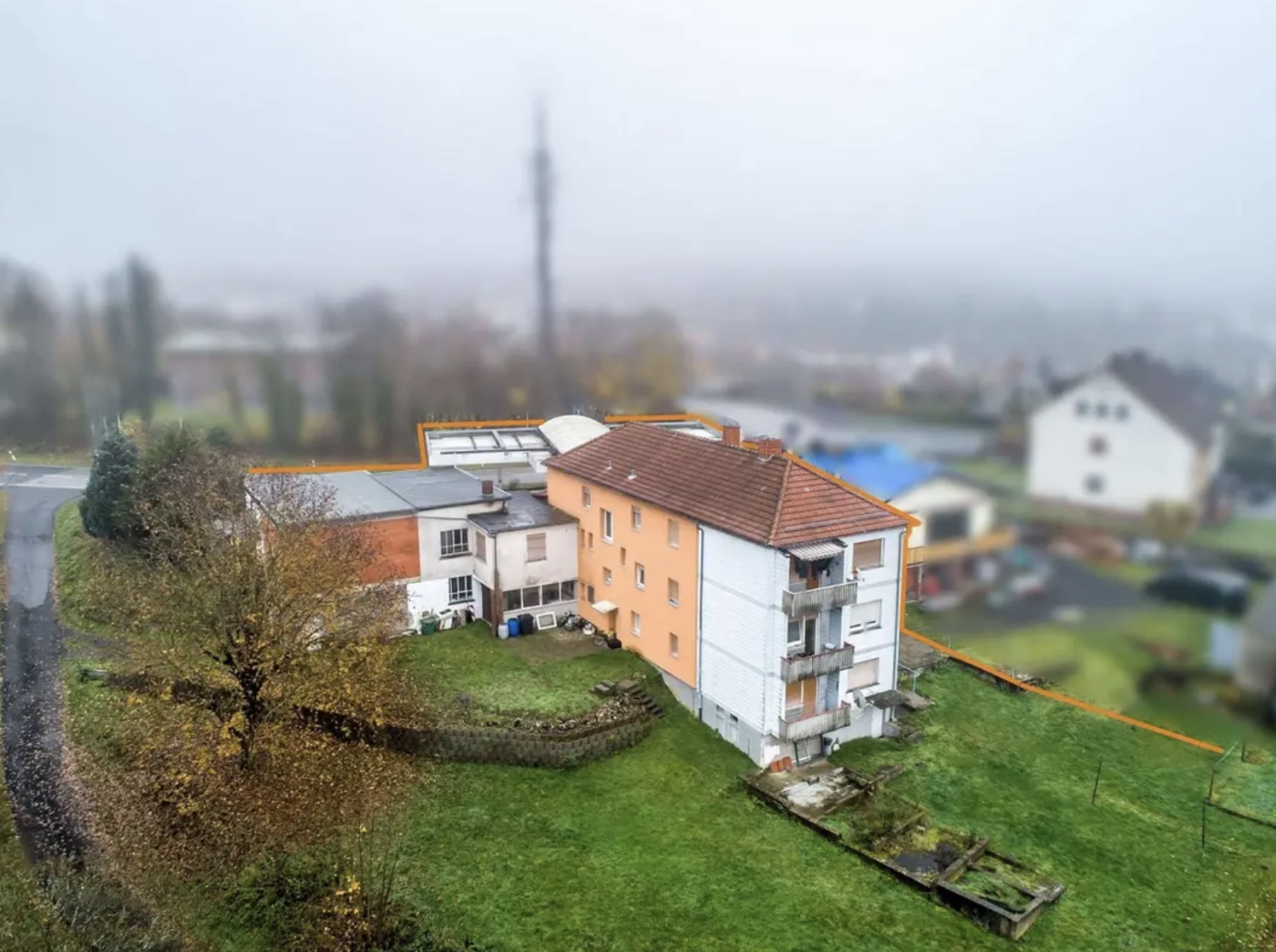 This residential and commercial building is located on the outskirts of Schotten and has a direct view of the
