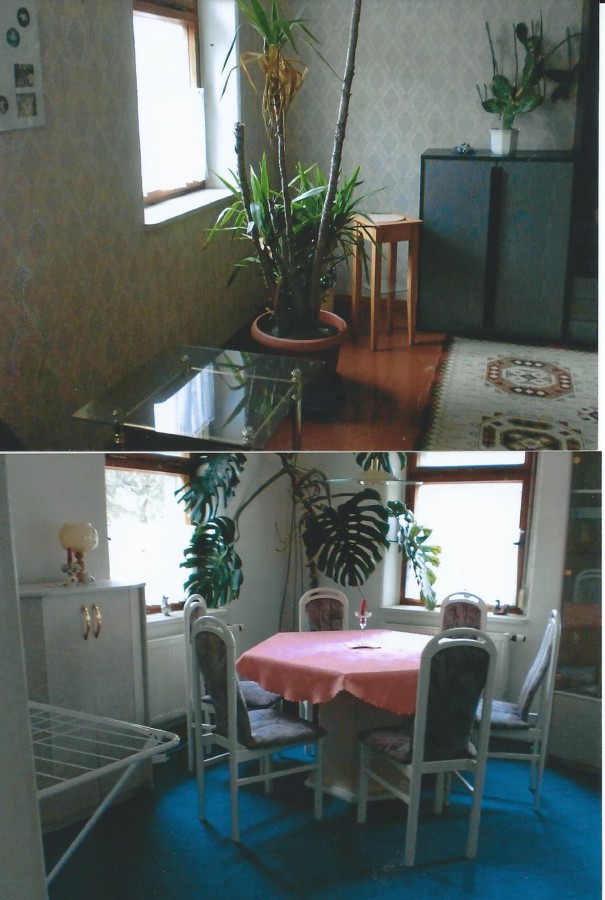 Single family home for sale privately with 3 bedrooms, 1 living rooms, 2 kitchens, 2 bathrooms, garage, laundry room and convertible attic. Building and open space are 730 m2 (7858 sq ft). The garden has an area of 437 m2 ( 4700 sq ft ). The property is not encumbered. On the ground floor, there is a large tiled stove as a supplement to the central heating. The building is in need of renovation. The purchase price of 55,000 euros may be negotiable.