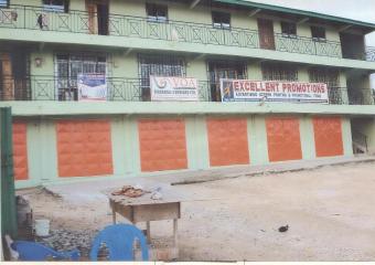is a commercial property that has 12 offices with two apartment is a 3 story building and facing a main winneba accra before kasoa.