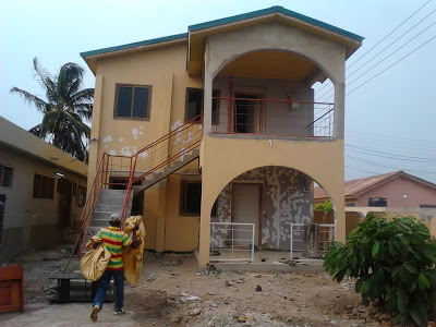2 bedroom apartment with 2 stores under it very cute and neat in the area of Accra pipe easy water access and a polytank for u with one free matress it has everything it takes to feel very comfortable cool area to relax and full compound if incase u will like to build another on the same plot
