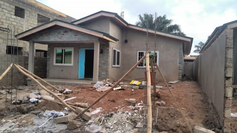 Newly built house security post Has a big hall Big kitchen with cabinets tiled rooms All rooms and kitchen nicely tilled Nice toilet and bathroom facility All and windows has burglary for security. House is walled and gated with compound nicely paved. There is everyday flow of water.