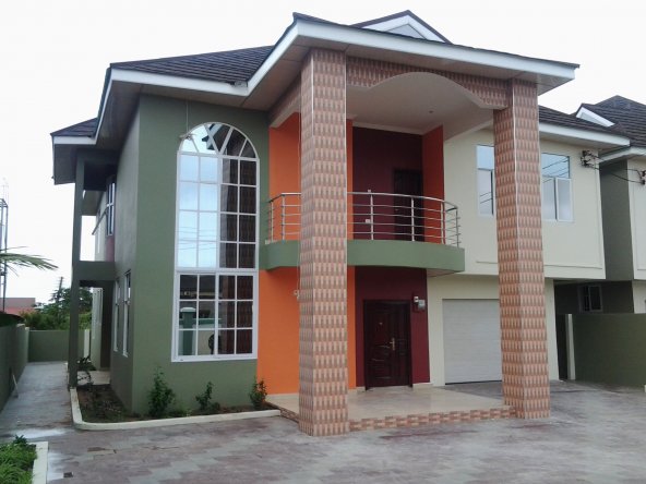 Brand new property 4 bedrooms-all en suit Walled and gated 2 sitting halls-upstairs and downstairs 1 bedroom down stairs.3 upstairs Tiled inside floors Remote controlled garage Fitted kitchen cabinet with gas burner Guest washroom Attached boys quarters Walled and gated Fitted security doors & slid ding windows Tiled concrete like compound Lawn area with garden lamps Ceiling is made of p.o.p