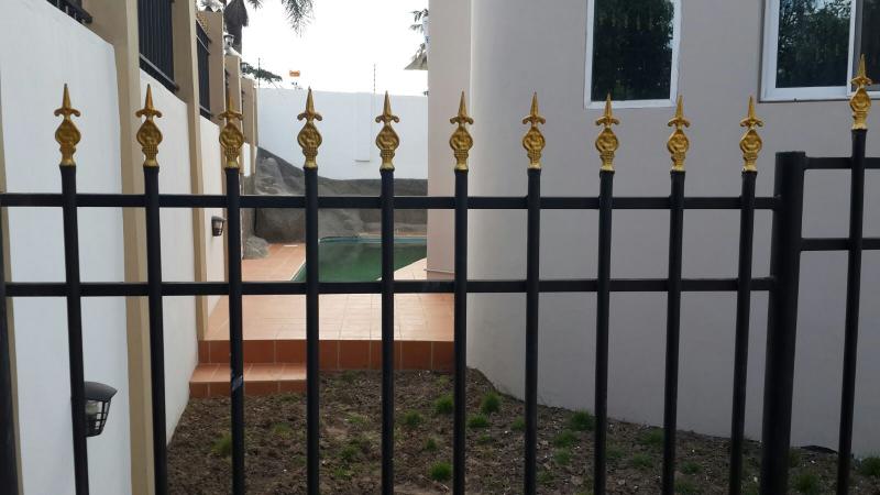 It is gated, self contained and unfurnished. It has a kitchen, living room/ bar area, dining area, family area, guard post, garden and air conditioning.