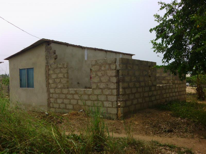 Best offer ooms almost completed self le at this point,plumbing ,septic tank etc are done two rooms and the bath have floors,two bedrooms ,bath,dinning,living room,store room,This house is going for a cool on a land of 40 by 78 feet square at a well developed area,land can be use for business center,it located at central part of ghana. a guest house can also be done is flat not s around and electricity is available at the close to a high way to many to a great fpofball e around are very or you can give me a car of any kind and you add 10000$ on top to swap.