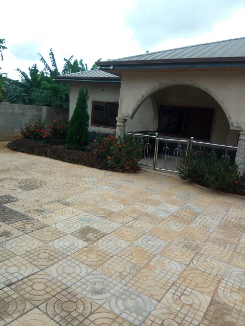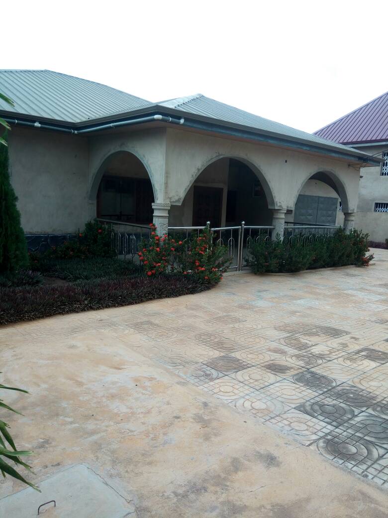 This is a four bedrooms single story building located in between Pokuase acp and Kwabenya main road. It has beautiful anscilliary facilities like built-in-wardrobes, floor areas made of luxurious Italian tiles, very big and outstanding kitchen, all bedrooms are en suite to standard, dining area, living area, paved compound walled an...