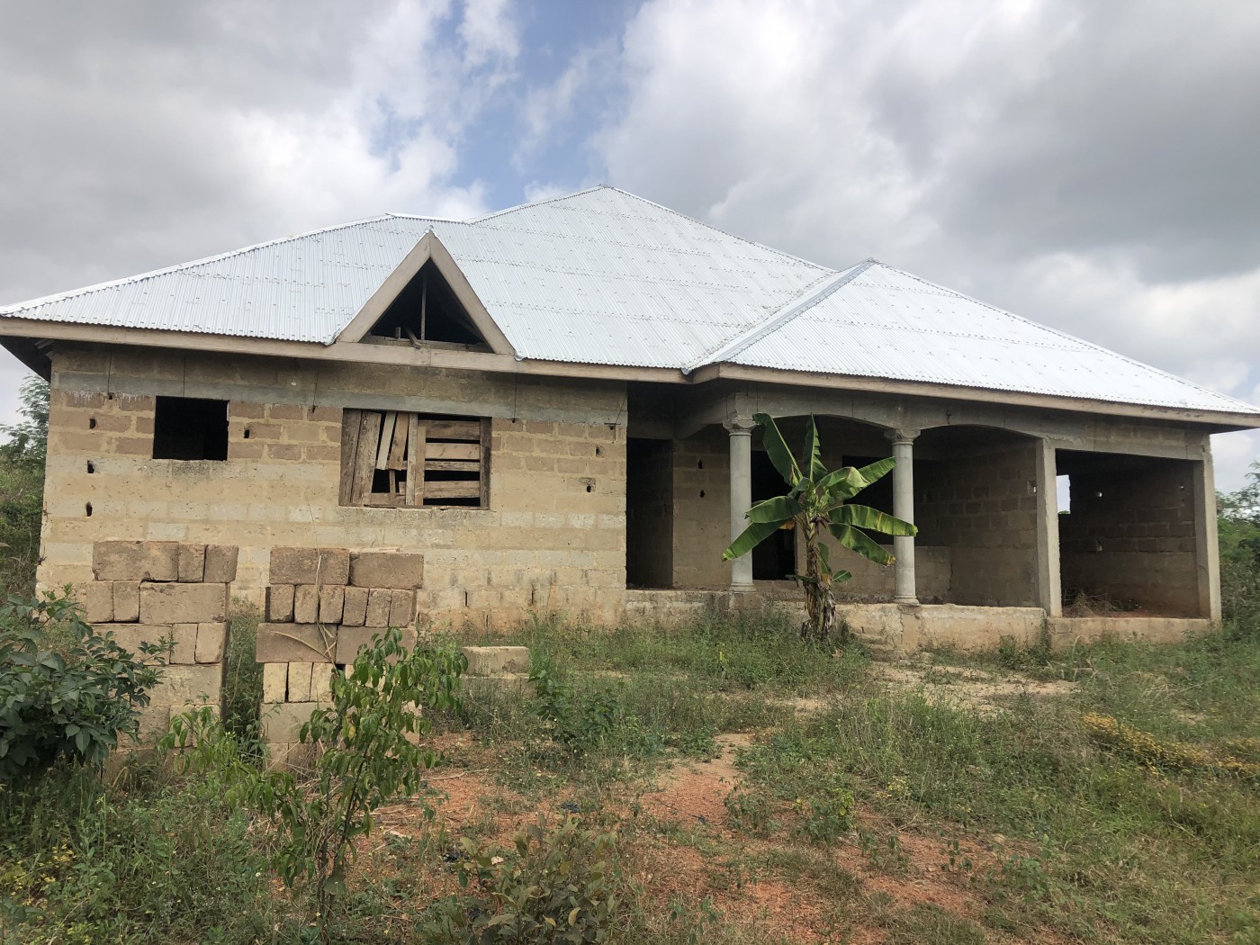 5 bedrooms with master living room and common living room The rooms are very big as well as the living room, dining,kitchen, store room and porch The master bedroom has closet or dressing room Am done wiring, But cables has not been fix. I have my allocation paper �`� and everything too