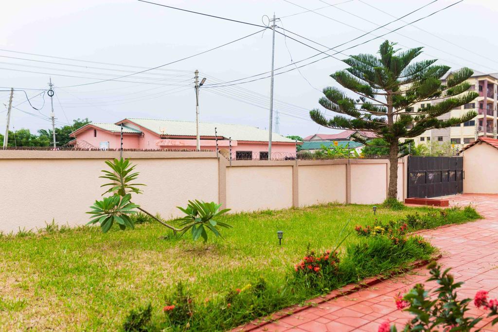 compound which can permit other developments in the premises. The land size was measured by 80 x 100ft. It is built on a One and a Half plots of land. It is built with an upstairs balcony facing the mountain, beautiful landscape garden and has an extra water tank. It has an electric fence and a very large modern gate with a security guard`s cubicle.