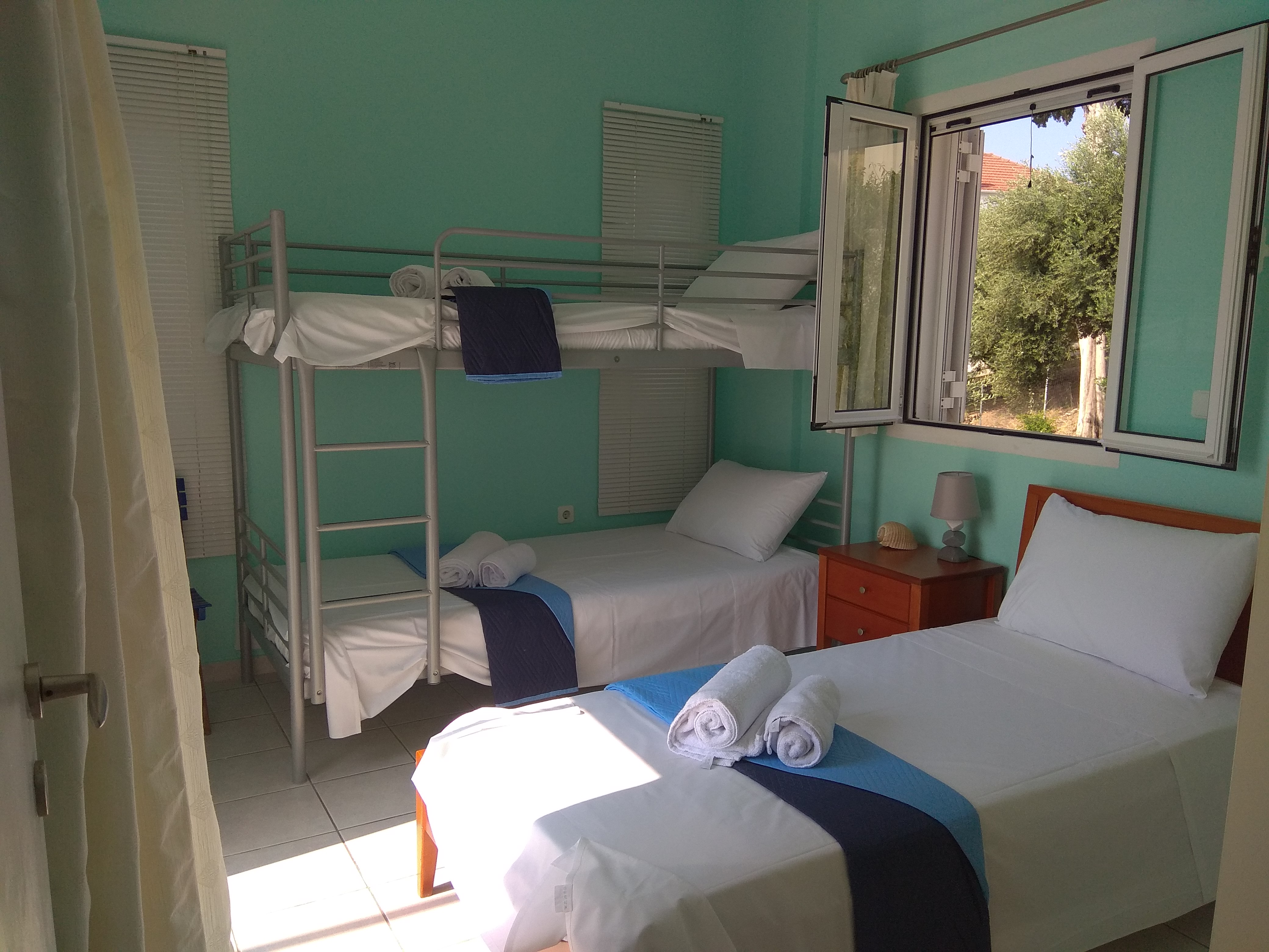 a second room with three beds,main bathroom