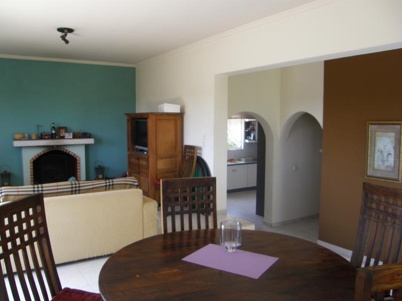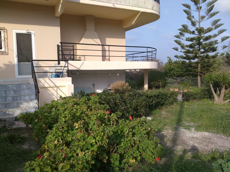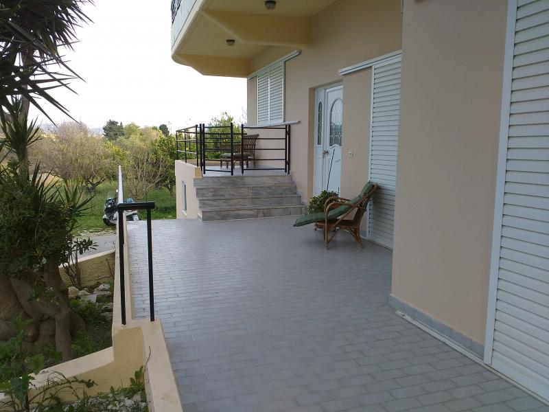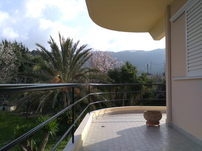 The house is in Trianda-Yalissos and has two floors; for sale is the first one -140m2, 3 bedr, salon with fireplace, kitchen, balcony all around, VERY NICE VIEW . Also, with separate entrance, a separate room with bathroom, a storage room with window and a indoor garage. The house is build on a 4000 m2 plot with various fruit trees. Very quiet and green area, halfway between city of Rhodos and Diagoras International airport.