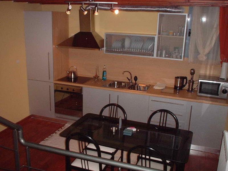 Plomari, Lesbos or Lesvos island, Northeast Aegean sea, Greece. Three story traditional attached house with 2 sitting areas, 3 bedrooms, 2 bathrooms, kitchen with built in electrical appliances, 2 balconies, fireplace, central heating, hot water boiler, hardwood floors, terracotta tiles (ground floor), aluminum double glass window frames, built in wardrobes and storage room near the center (agora) of Plomari. Excellent interior design set on different levels for open space effect. 80 cm thick stone walls, fully renovated, anti-seismic structure and in excellent condition, no repairs required.