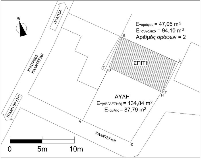 stone-made traditional low fence. The house is on two levels (ground floor and first floor),