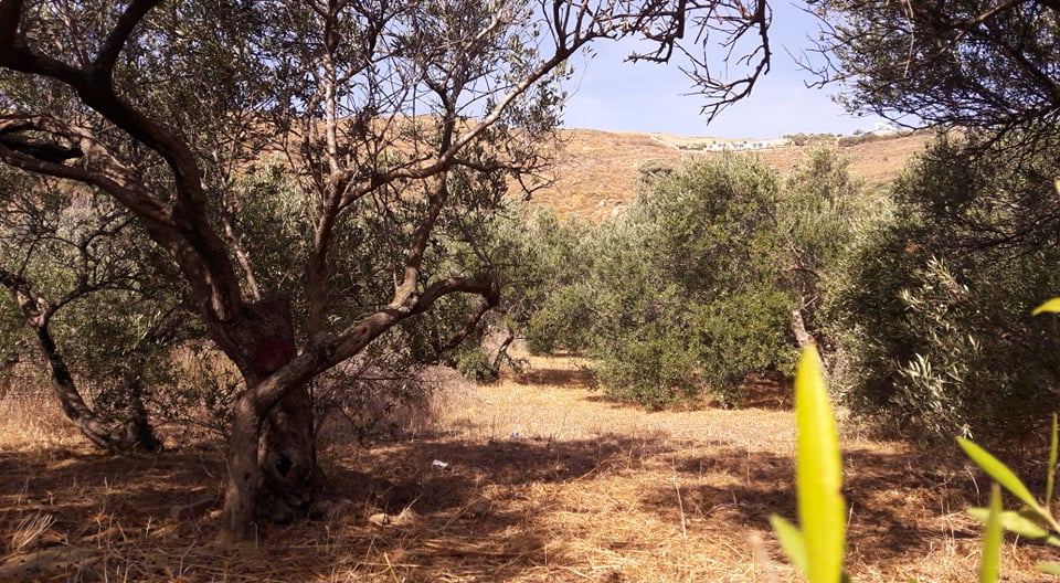 a piece of land, ( 5381.96 sq. ft ), with 18 olive trees , near the seaside and the port of Aegialis ( abt