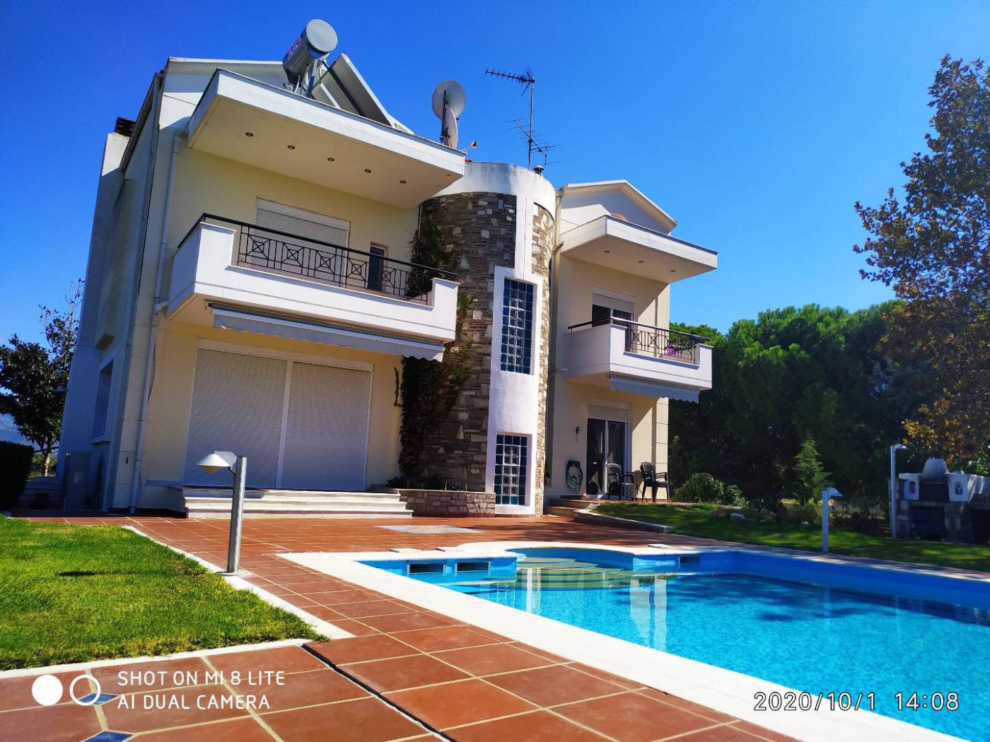 The villa is builded in a 4000m2 land and consisted of three levels construction: basement with a four car garage and a facility to accommodate a couple of house keepers, first floor, second floor and a loft on the top. The heating system is of air pump heaters and a solar water heater providing free hot water on sunny days.