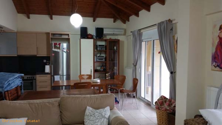 Size: 93 Sqm Second floor 2 Bedrooms 1 Attic room(3rd small bedroom) 1 store room 2 big balconies Private Garage 1 toilette with bath tub Fire place Private Heating System Fully Air Conditioned Fully furnitured Common swimming pool Satellite dish The property it is 3 minutes walk to the sea. 20 minute walk (5 minutes by car) to the train station which is 1 hour far from Athens by train 1 hour far by car from Athens 1 hour and half far to Kalavrita ski resort.
