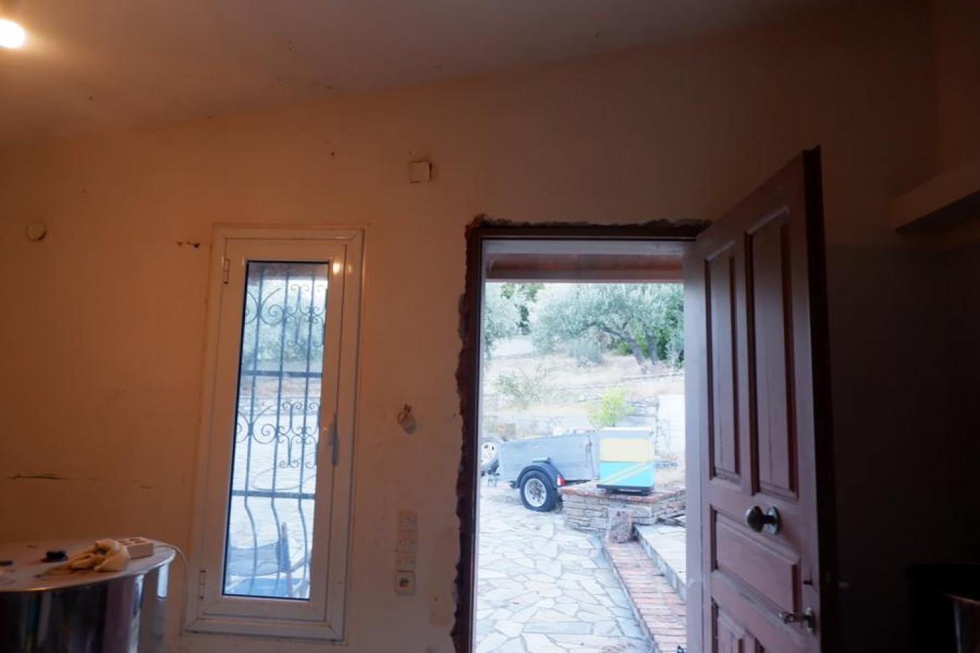The remaining work is the construction of the kitchen (plumbing is already installed), internal doors,
