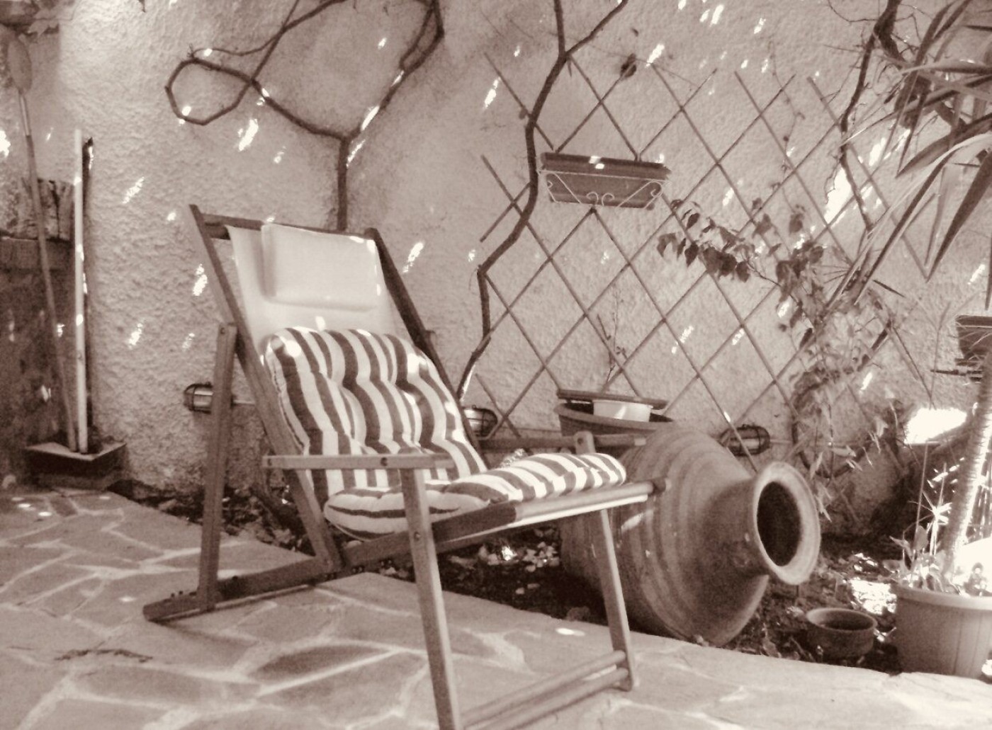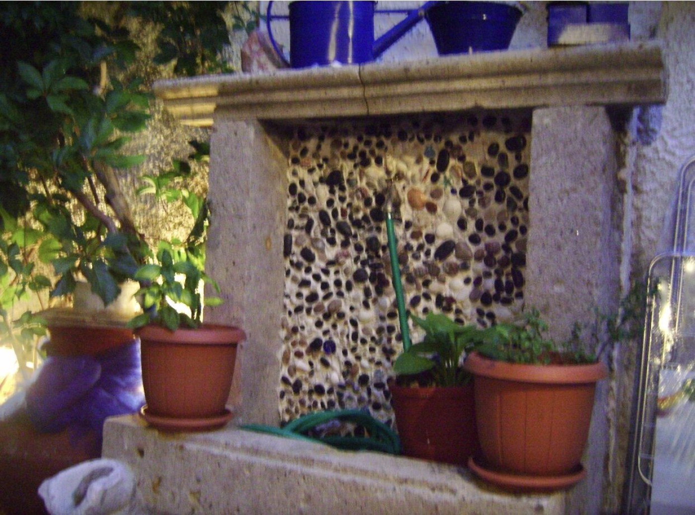 traditional aesthetics of the place with a solar water heater courtyard with a traditional urn and stone