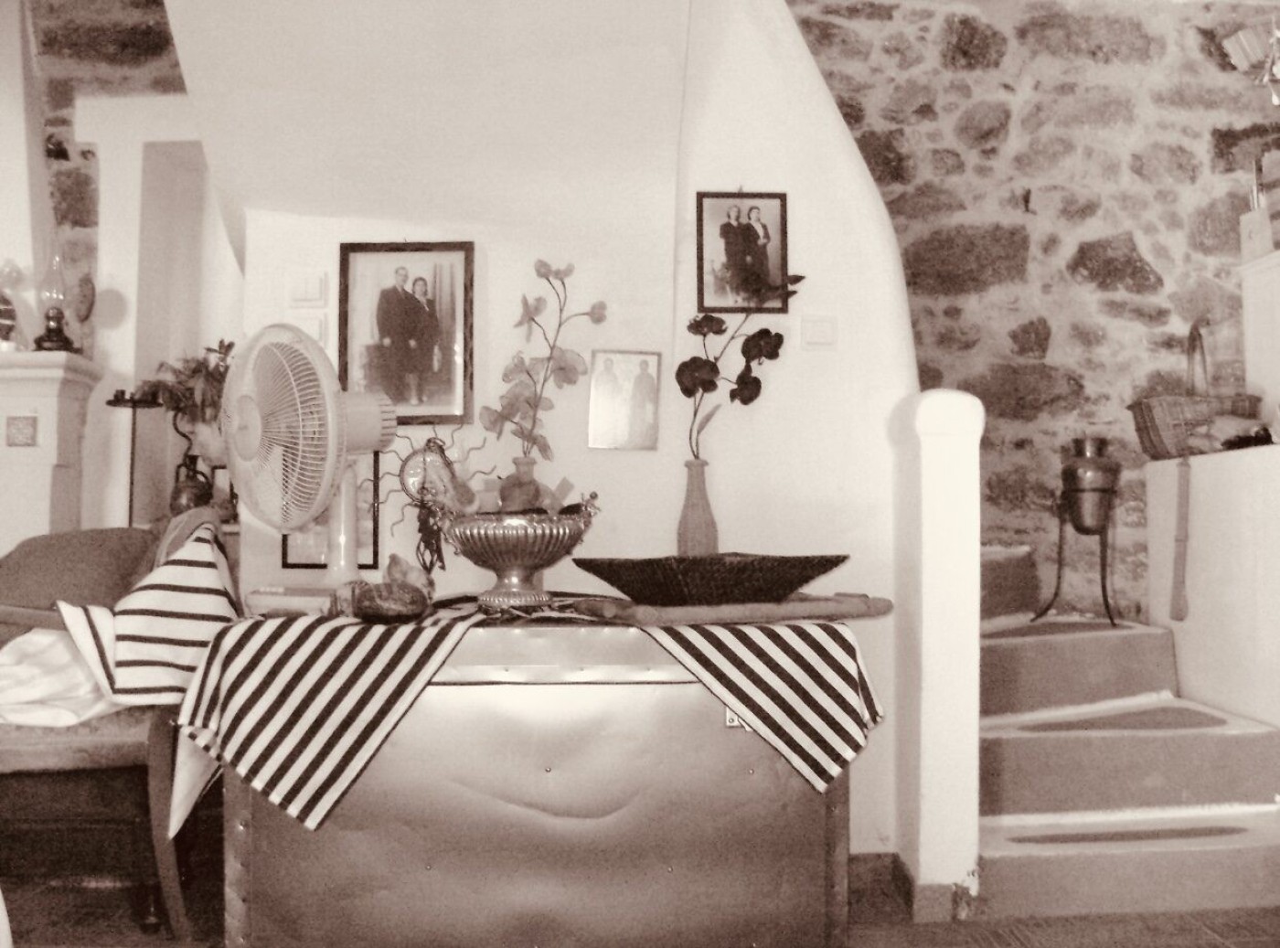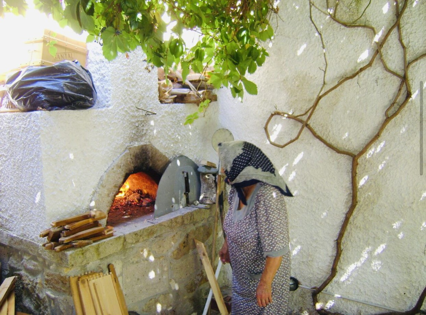 παραδοσιακή αισθητική του τόπου το με ηλιακό θερμοσίφωνα αυλή με παραδοσιακή �`ούρνα και πέτρινο