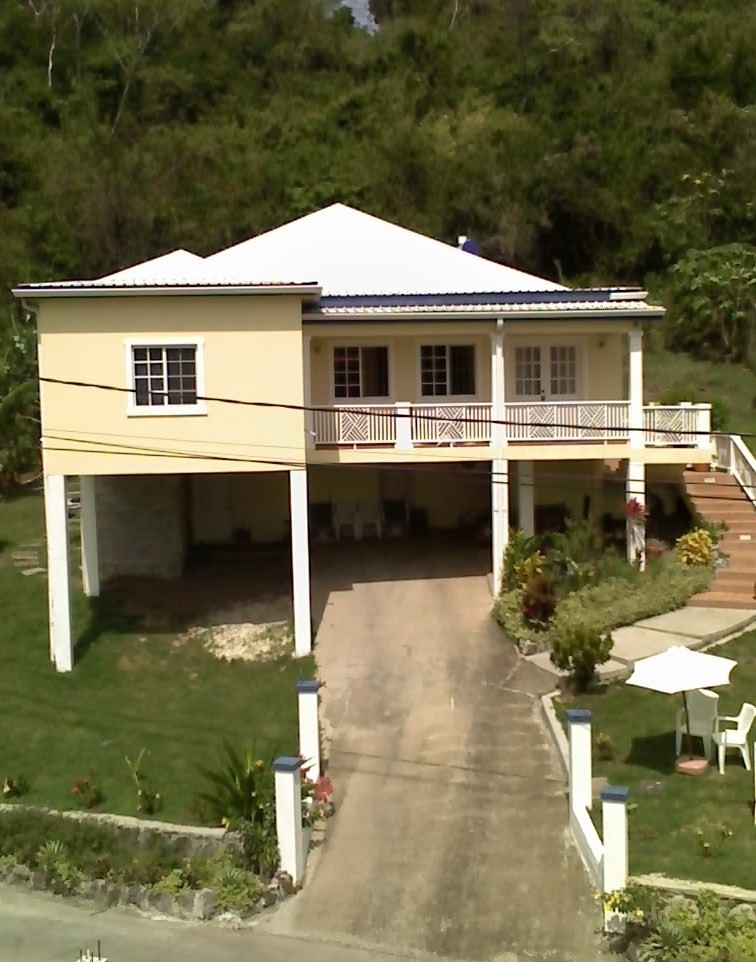 This BEAUTIFUL 3 bedroom/ 2 bathroom house with a studio apartment on the ground floor is located in the tropical paradise of Grenada in the Caribbean! Features include, wooden floors, fully air-conditioned,solar water heater, over 2000 gallons water storage,parking for 2 vehicles,over 2500 sq ft of living space, over 7800 sq ft of land! Located 1 minute from International Airport, beaches,restaurants,churches,schools and shopping areas! Ideal vacation home,investment opportunity,or retirement home! COMES FULLY FURNISHED! Take advantage of this wonderful opportunity, you will not regret it! Please contact us today! Serious enquiries only please. Thank you!