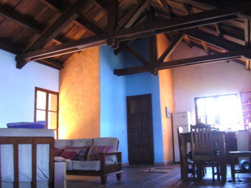 colonial style house surrounded by an exotic garden,situated on a hillside with magnificient views on beautiful lake atitlan and the 3 big volcanoes overloking the property is only 200 meters from the lakeshore and a public boat dock,nearby perfect spots for swimming and hot house is on the road that leads from the atitlan basin down to the pacific coast and its beaches of volcanic sand,only 2 1/2 driving hours nearer all over you can find exuberant nature that invites to many activities as hiking,swimming,biking,trekking,colourful indian markets,coffee plantations,mayan the nearby city of panajachel ideal shopping oportunities,as well as many restaurants and some night life. the house has 5 rooms,4 bathrooms,living-kitchen area,gardens,porch,parking ground,the property square for a bed &breakfast buisiness.